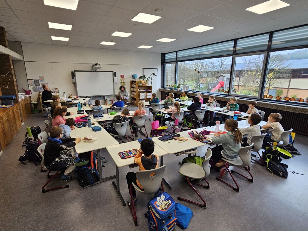 Da gab es in den 1.Klassen „Hilda Hasenherz und das Abenteuer im Fuchswald“ und „Billy Backe aus Walle Wacke“ zu hören. Die Kinder in den 2.Klassen lauschten gespannt dem Weihnachtsdrachen Spekulatius bei seinem „Abenteuer im Herbstwald“ und dem Buch „Karlchen und die Furchtlose Hand. Eine Bande flitzt los!“ Auch in den 3.Klassen wurde es den Schülerinnen und Schülern nicht langweilig bei „Henry Kolonko und die Sache mit dem Finden“ und bei „Super Wilma- Der Saurier in Aris und Karis Baumhaus“. Bei den Viertklässlern war noch etwas mehr Abenteuer und Familienspaß angesagt mit „Abenteuer-Express: Juwelendiebe im Highland-Express“ und „Crazy Family: Die Hackebarts schnappen zu!“