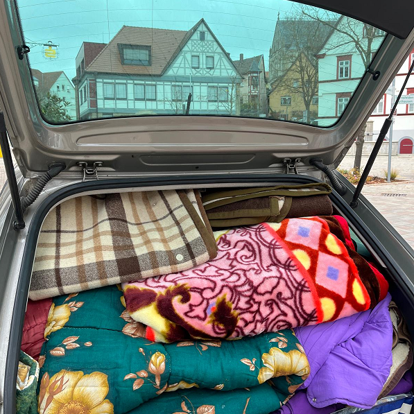 Mehr als eine gestopft volle PKW-Kombi-Beladung mit Decken wurden für die Ukraine gespendet.