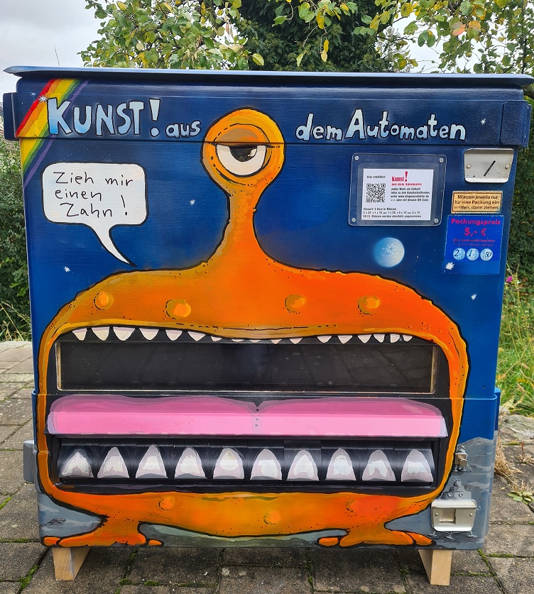 Der Kunstautomat in Igersheim ist der erste seiner Art im Main-Tauber-Kreis und hat seinen Platz künftig im Bereich vor dem BürgerLädle, also direkt am Möhlerplatz in der Ortsmitte.