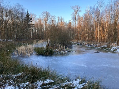 Die Frostnächte der letzten Tage zaubern nochmals eine besondere Stimmung am Egelsee. Die tiefstehende Sonne sorgt dabei für eine besondere Belichtung