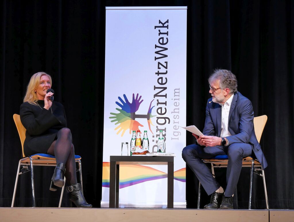 Im Gespräch mit Josef Gabel gibt sie ihren Zuhören Einblicke in ihr Leben, einem Leben, unbeständig wie das Wetter, mit Hochs und mit Tiefs. „Was hat Sie zu der Persönlichkeit gemacht, die Sie heute sind?“ Claudia Kleinert muss nicht lange überlegen: „Ich wurde in ein tolerantes, offenes Elternhaus hineingeboren. Werte wie Rücksichtnahme, Solidarität und Verlässlichkeit wurden mir dort vorgelebt und haben mich fürs Leben geprägt. Dazu wurde mir eine Portion Neugier und Mut mit auf den Weg gegeben.“ Nach einer glücklichen Kindheit und Jugend traf Claudia Kleinert der frühe Tod ihrer Eltern sehr hart. „Er stürzte mich in eine bodenlose Verzweiflung, aus der ich lange Zeit nicht herausfand“, erinnert sie sich. Erst allmählich setzte sich ihre eigentlich positive Lebenseinstellung wieder durch. „Immer wieder bin ich, wenn ich es besonders nötig hatte, Menschen begegnet, die mir weitergeholfen haben. Dafür bin ich dankbar, besonders meinem Bruder.“ Claudia Kleinerts Bruder ist behindert. Sie bewundere, wie sie sagt, seine Art, das Leben zu meistern. ‚Das kann ich nicht‘, habe sie noch nie von ihm gehört. „Als ich auf einer Veranstaltung der Lebenshilfe angesprochen wurde, ob ich mir eine Rolle als Botschafterin für Menschen mit Behinderung vorstellen könne, habe sofort zugesagt“, erinnert sie sich.