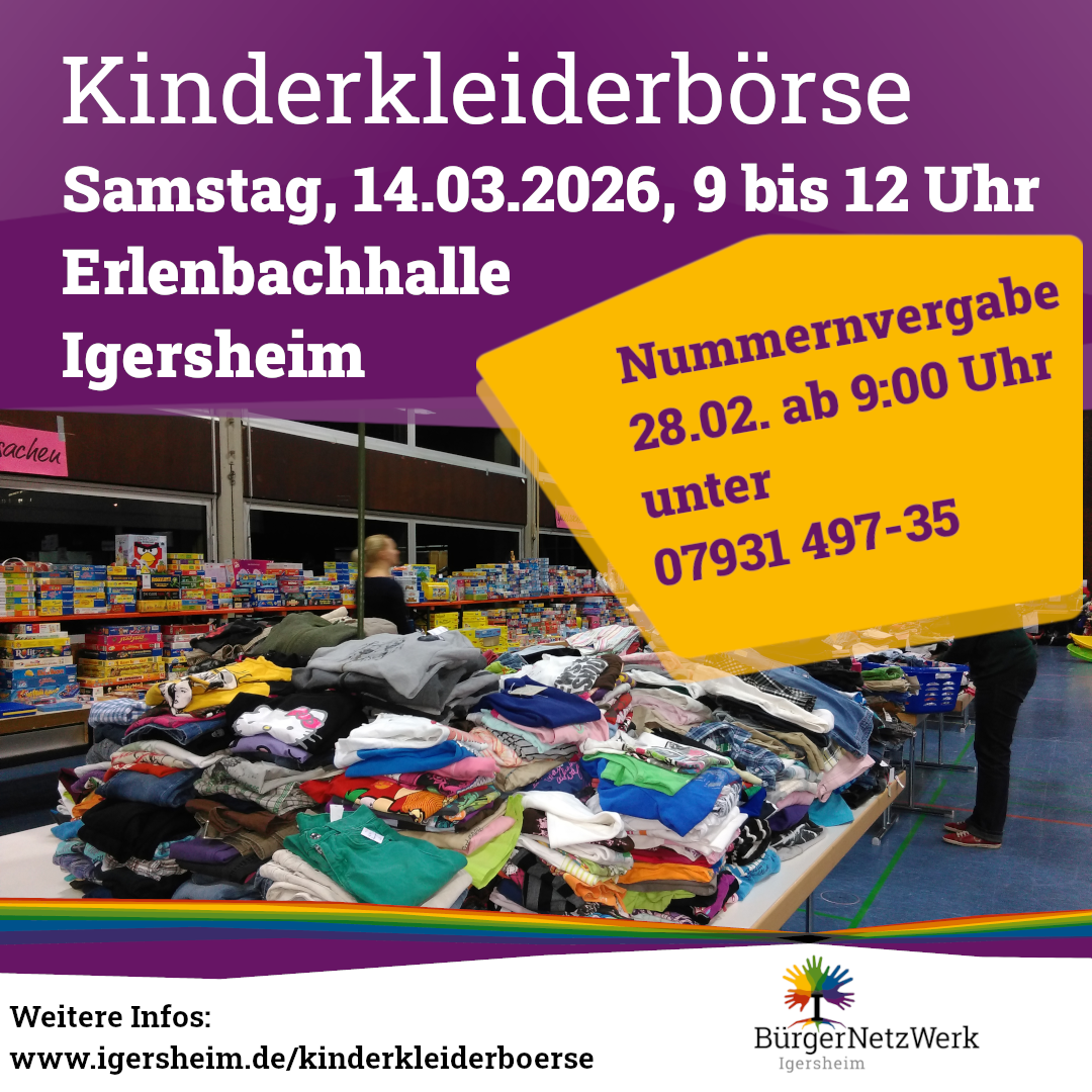 Weitere Infos gibt das BürgerNetzWerk auf www.igersheim.de/kinderkleiderboerse