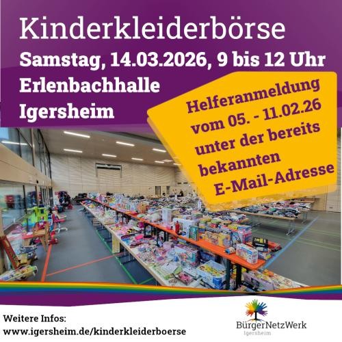 HEUTE startet die Helferanmeldung. Hier dürfen sich bis spätestens 11. Februar 2026 alle bisherigen Helfer, die wieder bei der Kinderkleiderbörse unterstützen möchten, unter der bereits bekannten E-Mail-Adresse melden.