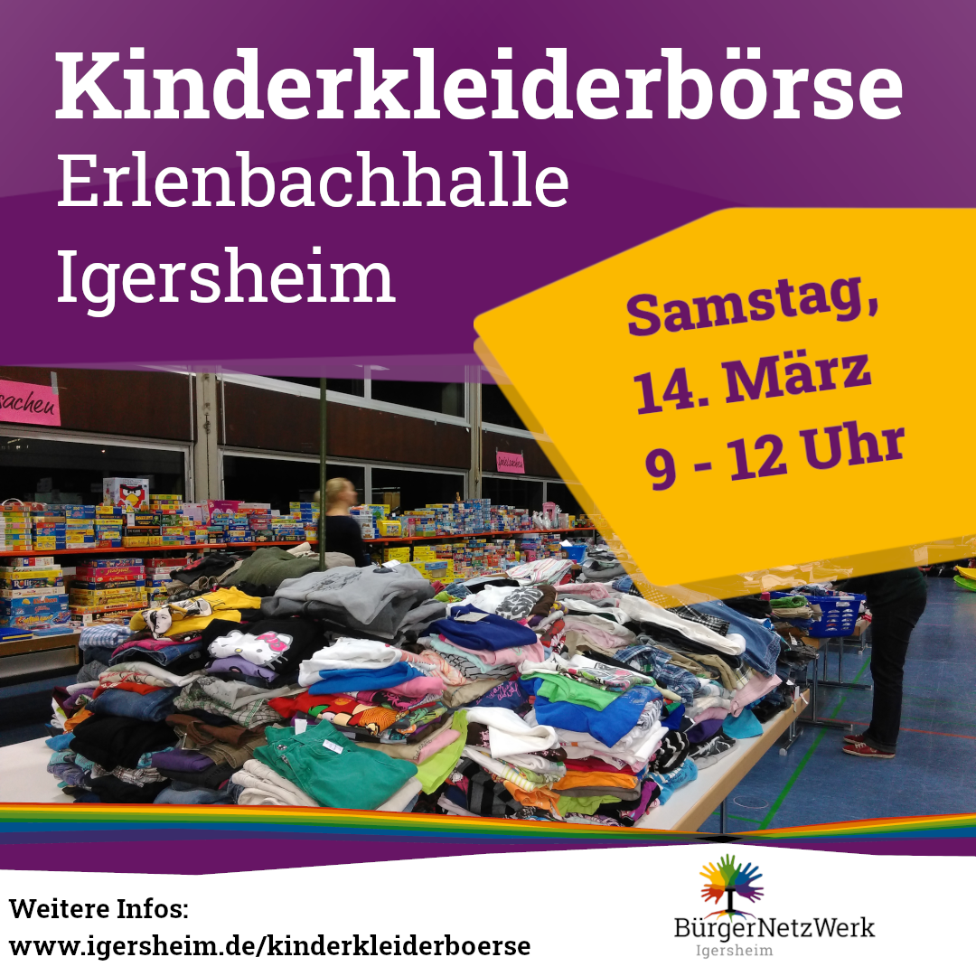 Die Kinderkleiderbörse Igersheim findet am Samstag, 14. März 2026 von 9 - 12 Uhr in der Erlenbachhalle Igersheim statt.