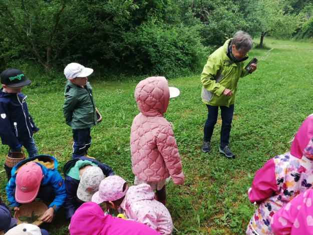 Gestartet wurde mit dem Thema Bienen, denn ohne Bienen keine Früchte. Rebecca vom Juki bot uns tolle Einblicke zu Ihrem Hobby „Bienen“. Die Kinder durften mit allen Sinnen dieses Hobby erleben. Jegliche Hilfsmittel konnten in die Hand genommen und angezogen werden. Das Leckerste der Aktion war natürlich die Verkostung von Honig. Die Kinder waren so interessiert und empfanden es so kurzweilig, dass sie gar nicht merkten, wie die Zeit verflog.